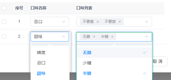 </el-table-column>/** 定义口味名称和口味列表静态数据 */